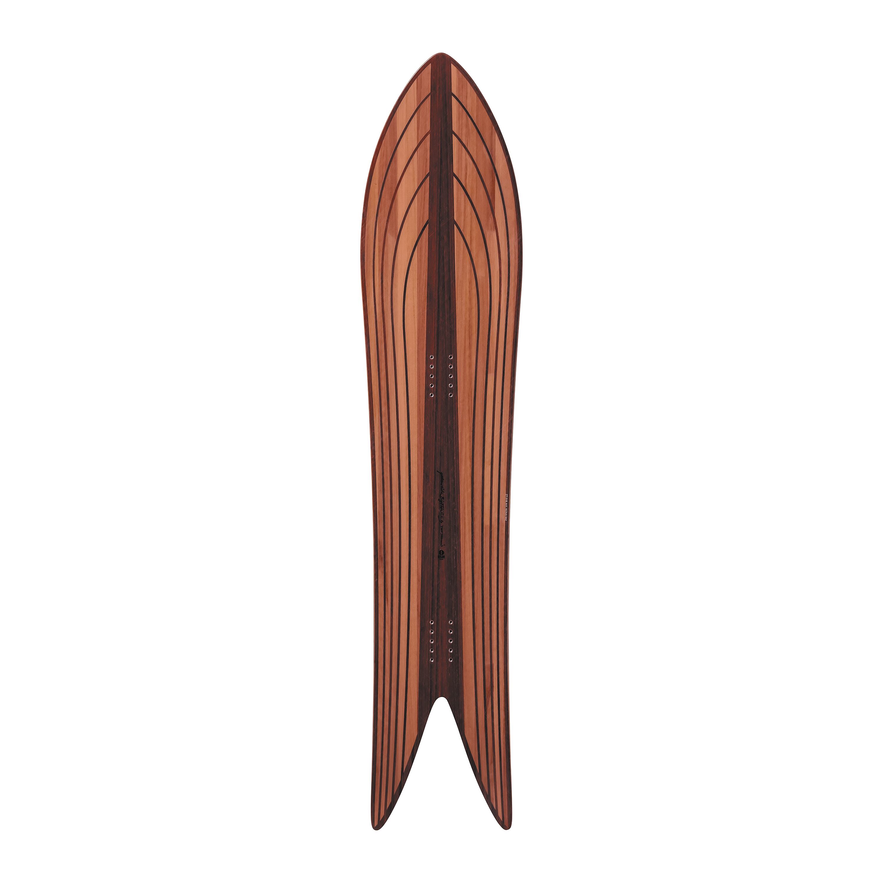 BIG FISH OUTLINE COREは、"BIG FISH"とは違う構造でバンブーストリンガーを採用しています。より粘りのあるトーションで、"BIG FISH"と比較した場合と若干柔らかめの味付けとなる。この手の板にありがちなパウダー専用ボードとは一線を画し、グルーマーのカーヴィングにも最高のフィーリングを提供してくれます。